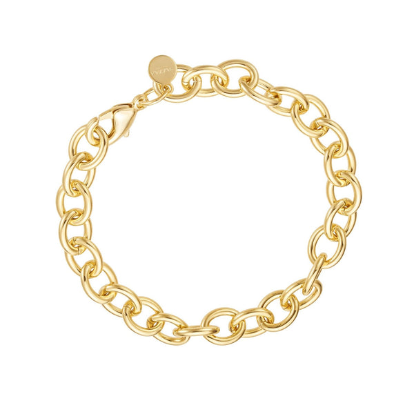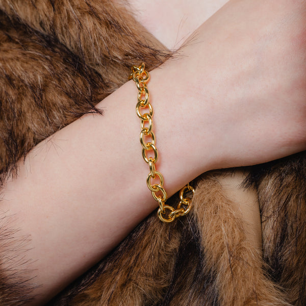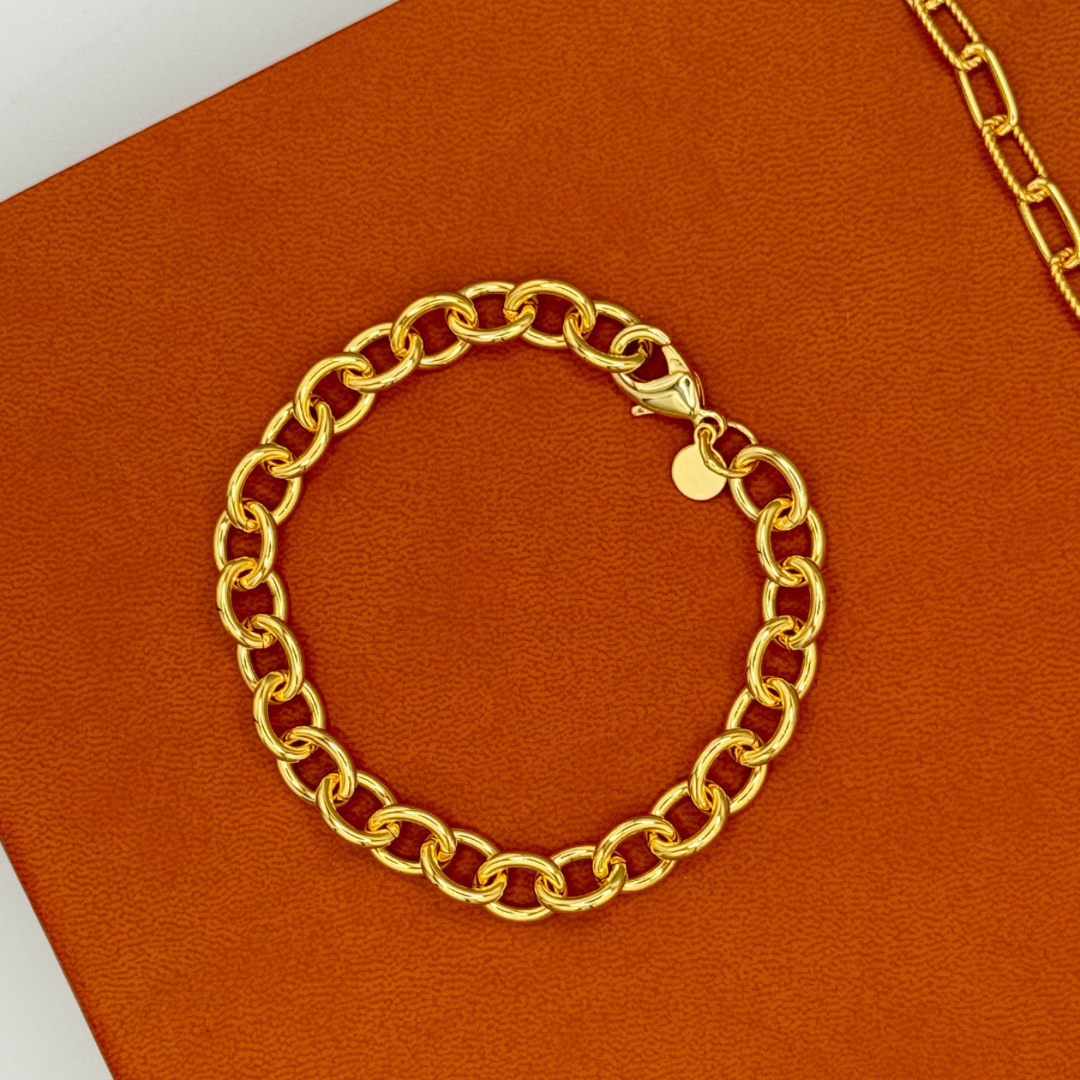 Oval Link Chain Bracelet featuring sleek, elongated links in a polished gold finish. Lightweight yet statement-worthy, it’s perfect for everyday wear or stacking with your favourite bracelets.